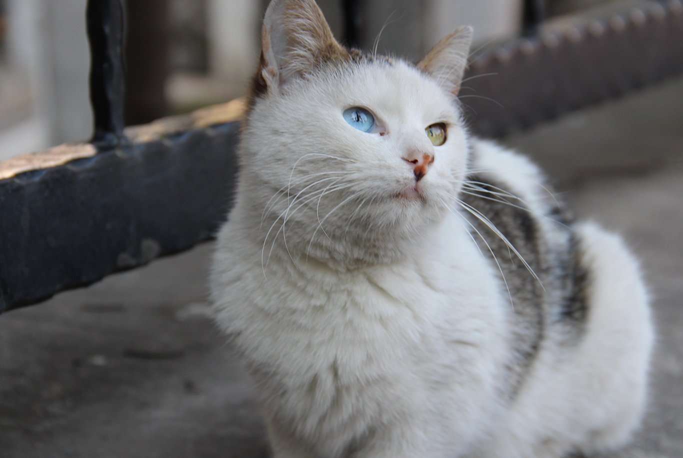 At first glance Turkish van resembles Turkish angora. Turkish van cats are medium in size and build rather muscularly. The triangularly shaped head is adorned with ears that are wide at the base and slightly rounded at the tip. Turkish van cats fur is medium in length, silky, during spring and summer month completely lack the undercoat. During winter, to provide the cat with more protection against the cold, the fur gets thicker and more fluffy. One of the most distinctive features of this breed is most definitely the coat colour. Turkish van cats have white fur with coloured markings on their head and tails. The colourful fur cannot cover more than 20% of the cat’s body.